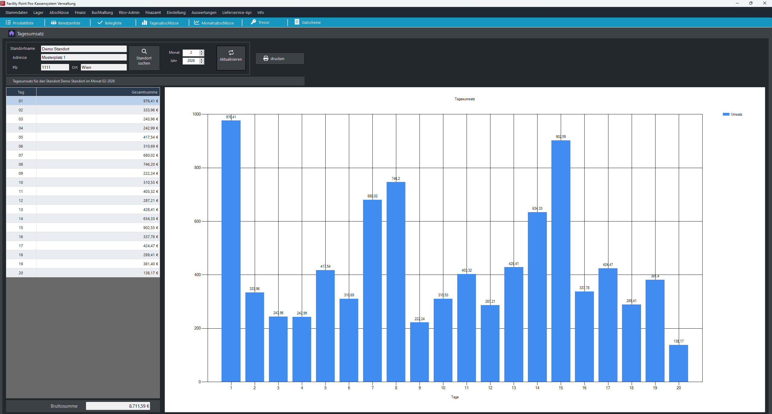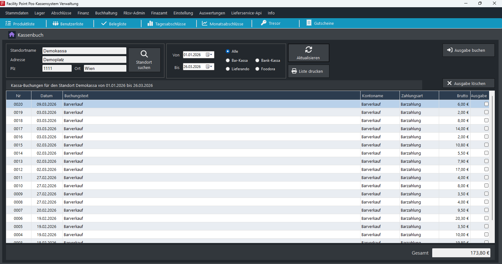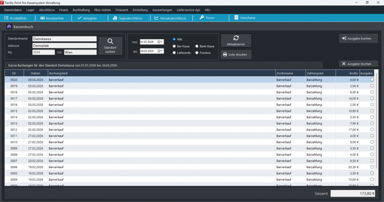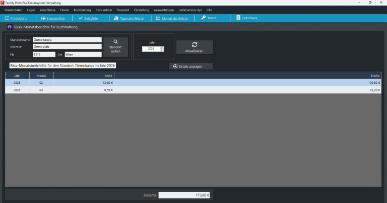 Backup aller relevanten Daten (Datenbank, Datenerfassungsprotokoll, Start-, Monats- und Jahresbelege).